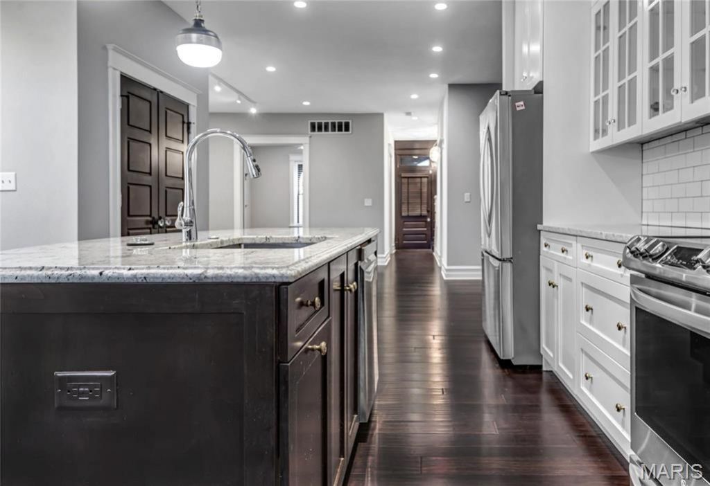 Fully renovated, fully occupied duplex just steps from The Grove and minutes from the Central West End! Both units feature identical 3 bed, 3 bath townhome floor plans with nearly 2,300 sq ft each, full unfinished basements, and a detached 4-car garage (2 spaces per unit). Each unit offers an open floor plan with a beautifully updated kitchen including large island, granite countertops, custom cabinetry, subway tile backsplash, stainless steel appliances, recessed lighting, and wood flooring throughout. Spacious primary suite with updated bath, walk-in glass shower, walk-in closet, and private covered balcony. Two additional bedrooms, full bath and laundry area with washer/dryer complete the second floor. Main level includes generous living space, half bath, and access to a deck, large patio, and fully fenced yard. Turnkey investment opportunity in a prime location!