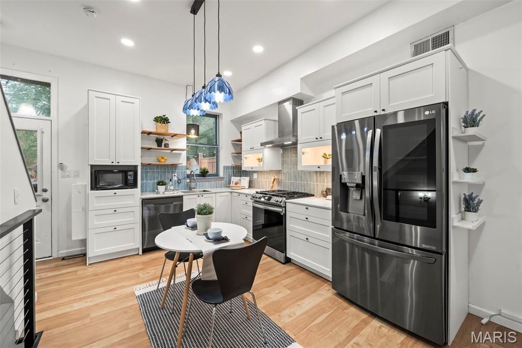 Nestled in Lafayette Square, one of St. Louis's most beloved neighborhoods, this two-story brick residence with a finished lower level delivers three bedrooms, two full bathrooms, a private courtyard, and dedicated parking - all within one of the city's most historic + walkable neighborhoods!Inside, 10-foot ceilings and oversized windows on a corner lot make the first floor feel bright and welcoming. The beautifully renovated kitchen (2024) features sleek Dekton countertops, custom cabinetry, and thoughtfully placed shelving that maximizes every inch of storage. From there, step out to the deck overlooking your private courtyard - perfect for morning coffee or evening entertaining. Head upstairs and you'll find two bedrooms and spacious full bathroom. The lower level adds valuable living space with a private third bedroom and full bath - great for guests, a home office, gym, or flex space to fit your lifestyle.Now the real dilemma... with a kitchen this gorgeous, will you ever want to eat out? Lafayette Square makes that decision tough. The stroll to Eleven Eleven Mississippi will be under five minutes, and you won't believe how many STL hot spots you can walk to in under ten! Polite Society, Planter's House, Extra Wavy, Hamilton's Steakhouse, and don't sleep on Vicini's handmade pasta (served only on weekends at lunch). Commuting is a breeze with quick access to I-44 and I-55, and there's Target (and TopGolf!) just five minutes away. Juxtaposing those modern conveniences is stunning Lafayette Park itself. The oldest urban park west of the Mississippi, it features 30 acres of winding pathways, ornamental gardens, tranquil water features, and a playground.Walk everywhere. Love where you live.