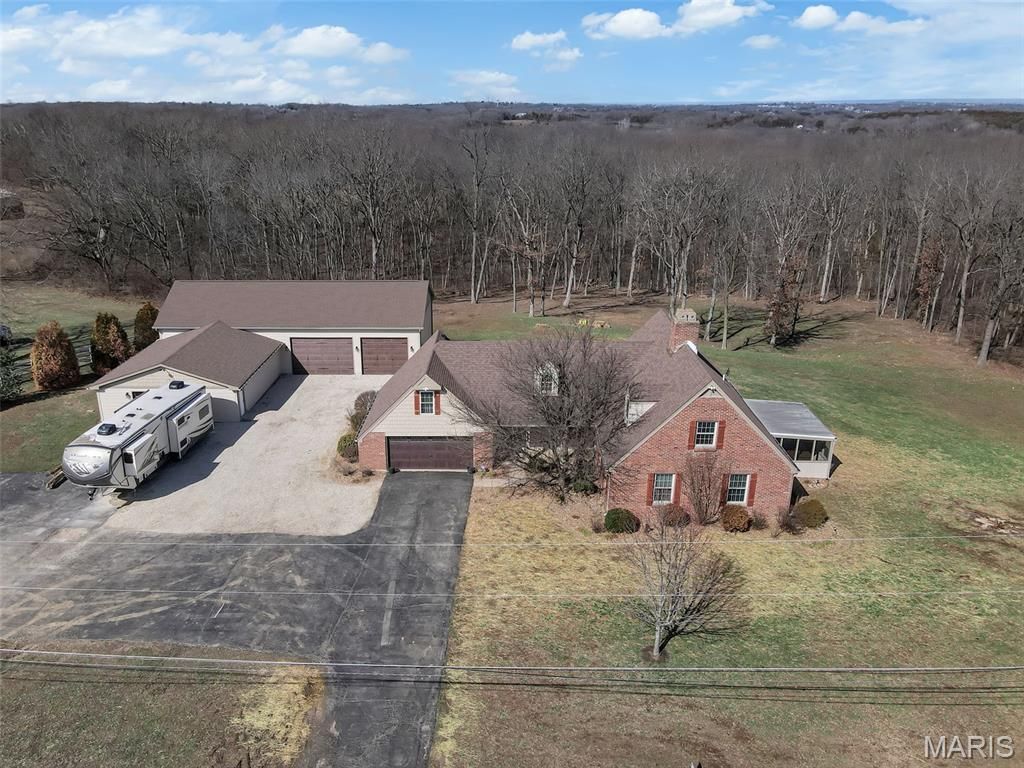 Step into this remarkable 1.5 story home where classic meets modern comfort. From the moment you arrive at the covered front porch and enter the beautifully updated foyer you'll feel right at home. The heart of the home is the stunning kitchen, thoughtfully updated with granite countertops, custom cabinetry, stainless steel appliance. a spacious island with breakfast bar, and not one but two pantry closets. Heated tile floors add a touch of luxury in the kitchen and all three bathrooms. Just off the kitchen, enjoy your morning coffee or evening unwind in the inviting screened-in porch. The open floor plan flows effortlessly into a generous dining room and comfortable living area creating the perfect space for both everyday living and entertaining. The main level features a spacious primary bedroom, an additional bedroom and a beautifully updated bath. Upstairs are two oversized bedrooms and a large full bath. The finished walkout LL expands the living space with a large rec room, cozy family room with a wd burning FP, custom bar, three quarter bath and laundry room. Car enthusiasts and hobbyists will love the attached 23x23 garage plus an impressive 30x32 and additional 66x30 12' high detached garage, perfect for multiple vehicles , workspace or extra storage. A Circle asphalt driveway adds convenience and curb appeal.With thoughtful updates throughout, exceptional space, and unmatched versatility, this home truly must be seen to be appreciated. Your home sweet home awaits.SELLER WILL NEED A 24 HOUR RESPONSE TIME