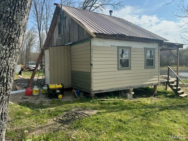 Located in Mtn. View, MO- 4.8 acres m/l on a large 8 acre shared lake with neighbors. Unfinished off grid cabin 16x24 1.5 story, , hand dug well, and some beautiful views. Cabin has a loft upstairs, full bathroom, kitchen bedroom (no closet) living room on the main floor. NO RESTRICTIONS and sits at the end of a dead end road. Needs some finish work, but you can live in it, and finish the way you want it. Electric available by having electric company adding two poles (per Seller)