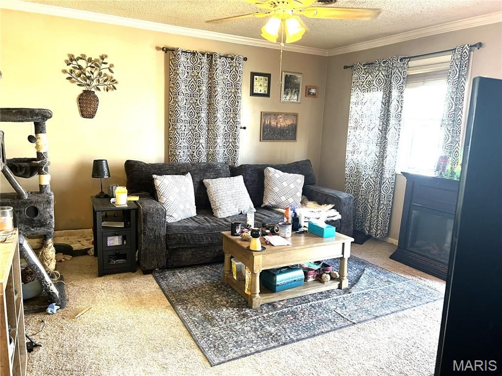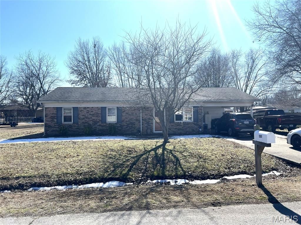 Check out this affordable, brick-front, vinyl siding on 3 sides, three-bedroom, one-bathroom home located at the edge of Portageville within city limits. Step inside and you will find the living room, dining room, kitchen, and a small laundry room with added storage to your right and the three bedrooms and bathroom to your left. Living room, hallway, bedrooms have carpeted flooring, dining and kitchen have LVP flooring and bathroom and laundry room have ceramic tile. The galley kitchen has nice hardwood cabinets with ample storage and major appliances included. Trim at floor and ceiling throughout. Ceiling fans located in all three bedrooms and living room. The bathroom has been updated to include a vanity cabinet with storage, a surround shower/tub combination, painted B-boards, with trim and 6-panel doors. Outside you'll find an inviting front porch, single-car carport, large, level back yard which would be ideal for a future pool or outbuilding. Great location for your new address.