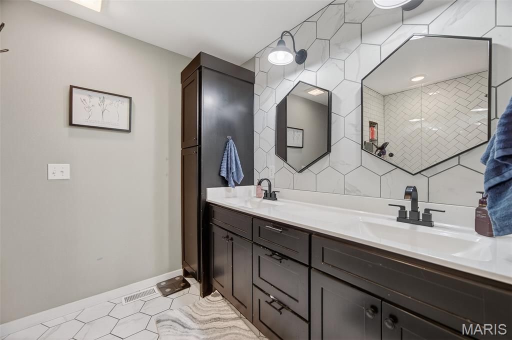 Positioned on 4.3 gently rolling acres in the Waynesville School District and located near the newly constructed Liberty elementary school, this stunning two-story home offers privacy, functionality, and refined craftsmanship in one exceptional setting. A welcoming covered front porch sets the tone, while inside the open-concept layout creates seamless flow between the living, dining, and kitchen spaces. The well-designed kitchen features granite countertops, dramatic counter-to-ceiling tile backsplash, an oversized island with integrated sink and dishwasher, and deep storage drawers that maximize organization and entertaining ease. The main-level primary suite provides a private retreat with a spacious walk-in closet and spa-inspired bath complete with tiled walk-in shower, double vanity, tile flooring, and counter-to-ceiling backsplash detail. A thoughtfully placed laundry and mudroom on the main level adds convenience for acreage living, and crown molding with detailed trim work throughout elevates the overall finish quality. Upstairs includes a private secondary suite along with additional bedrooms and a shared bath featuring dual vanities, offering comfortable space for family or guests. Outdoor living is equally impressive with a large rear deck, a screened-in porch for year-round enjoyment, and a 30ft pool surrounded by an expansive deck designed for summer gatherings. A tree fort for the kids, doubling as a tree stand. The attached two-car garage is complemented by a fully insulated second garage/shop with its own bathroom, providing exceptional flexibility for hobbies, storage, business use, or future guest accommodations. Additional features include an 80-gallon Energy Star water heater, whole-home water softener, and a pellet stove in the living area. This property delivers the rare combination of acreage, privacy, functional upgrades, and proximity to schools while remaining just minutes from Waynesville and Fort Leonard Wood. Measurements are approximate.