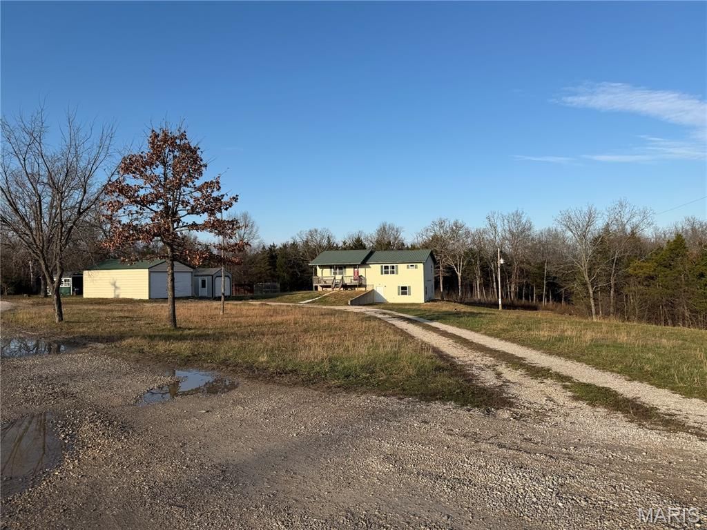 Welcome to this beautiful 5-bed, 2.5-bath home on 1.79 acres! The open-concept main level boasts a stylish kitchen with granite countertops, commercial refrigerator, 4 oven spaces, island, pantry, and stainless-steel appliances. French doors lead to a deck overlooking the serenity of your backyard. The main-floor master features a walk-in closet and ensuite with a tub-shower combo. A half guest bath and 1 bedroom completes this level. The full walk-out basement houses an impressive family room, three bedrooms, a laundry room, and a third bathroom with a gorgeous and spacious tiled shower. Ceramic tile flooring runs throughout the lower level. Outside, you will find a 2 car metal garage building that has a gravel floor and, a shed provides additional storage. A chicken coop ready for its new friends leads to a spacious back yard. Don't miss the chance to see it for yourself-schedule your private showing today!
