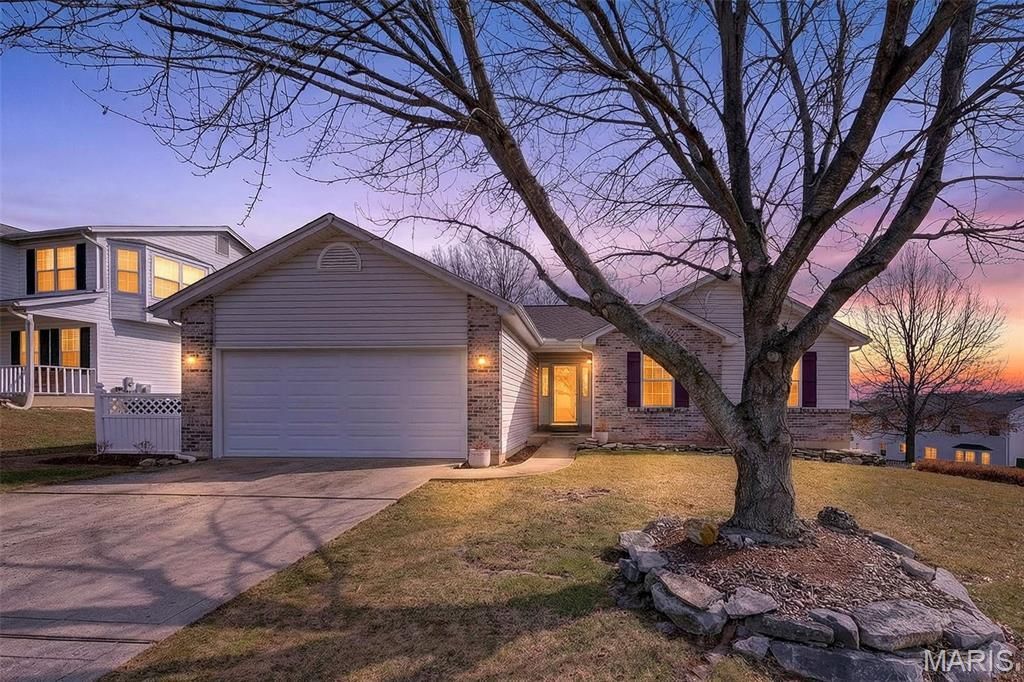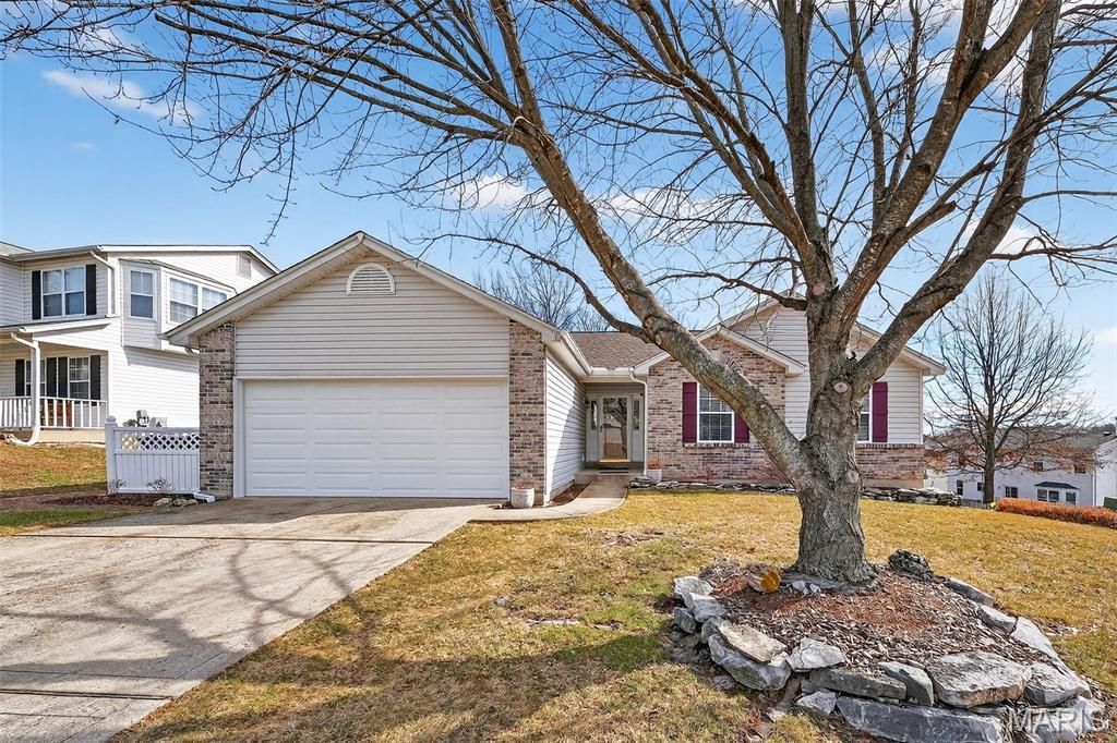 Exceptional atrium ranch in the heart of St. Charles! Step into the welcoming entry foyer and immediately take in the stunning backyard views. The vaulted ceiling in the living room complements the cozy fireplace, creating a bright and inviting space. The kitchen features newer stainless steel appliances (refrigerator stays), granite countertops, breakfast bar, and updated main floor laundry (washer and dryer stay). The spacious primary suite offers a walk-in closet and private bath with separate shower, soaking tub, and large vanity. Two additional bedrooms and a full bath complete the main level. The finished lower level expands your living space with a second primary suite and ensuite bath, a 5th bedroom with walk-out, large family room, abundant storage, and a second walk-out for easy backyard access. The backyard is truly spectacular-fully fenced with a huge patio for entertaining, storage shed, and professionally landscaped rock wall showcasing a beautiful waterfall.Newer LVP flooring on the main level. 2024 roof, gutters, and downspouts. 2-car attached garage with workbench and storage. Subdivision trail close by. Easy access to 364. Close to Veterans Tribute Park with it's off leash dog area. Neutral decor, abundant natural light, meticulously maintained, and move-in ready!